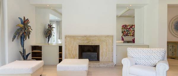 La parte centrale della villa di lusso presenta un grande salone arredato con grande gusto, dove il bianco è il colore dominante ed è sapientemente accostato ai colori vivaci dei pregiati complementi d´arredo; troviamo inoltre quattro camere e tre bagni, camera di servizio con bagno e una spaziosa cucina.