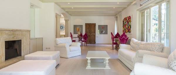 L´incantevole giardino che la circonda, con la sua superficie di circa 6.000 mq di curatissimo prato all´inglese, le regala un´atmosfera quasi fiabesca, e gli alberi d´alto fusto offrono fresche zone d´ombra al riparo dai caldi pomeriggi estivi.